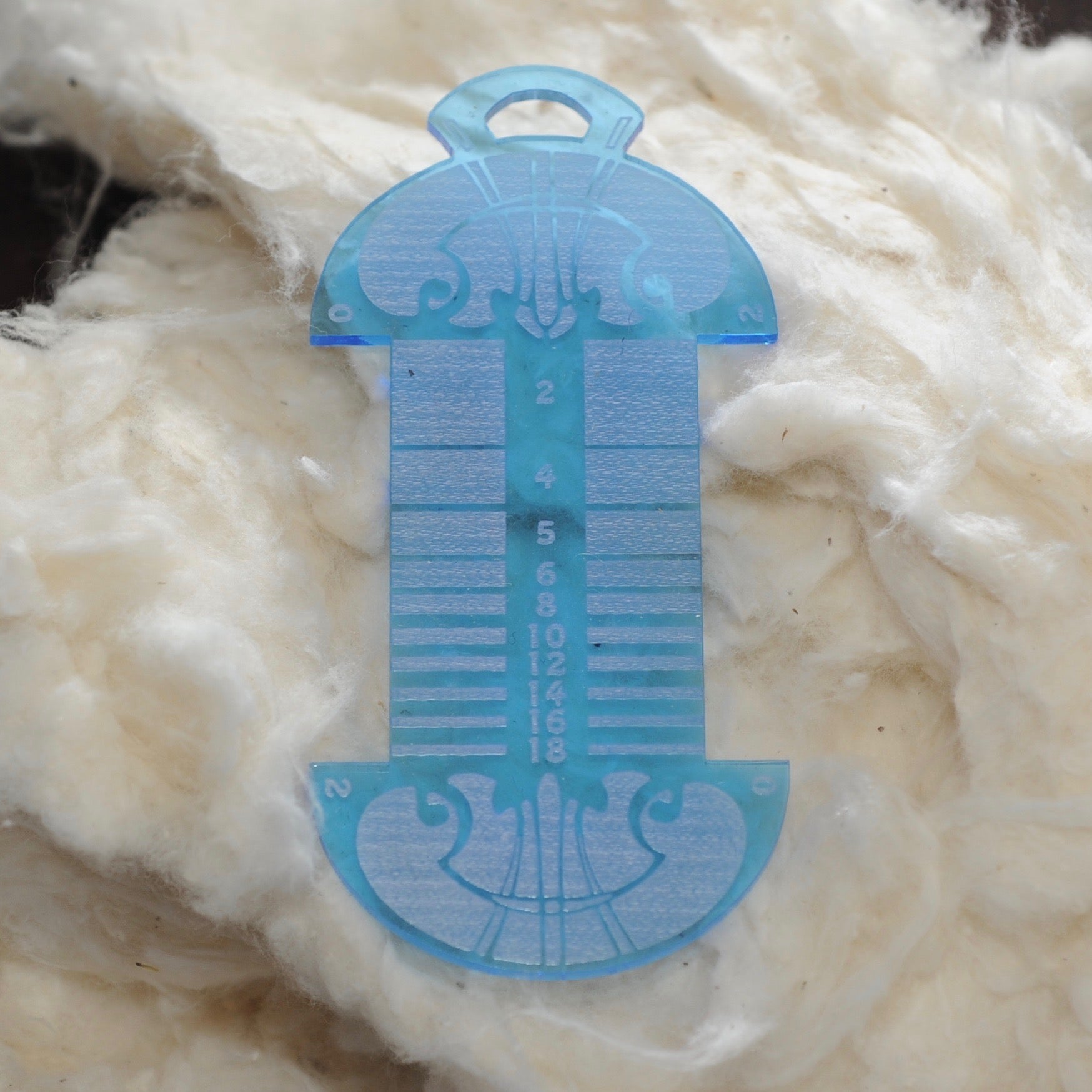 Macro Precise WPI (Wraps per inch) tool - easy to hang from your wheel or stash in your spinning bag to check WPI as you spin.