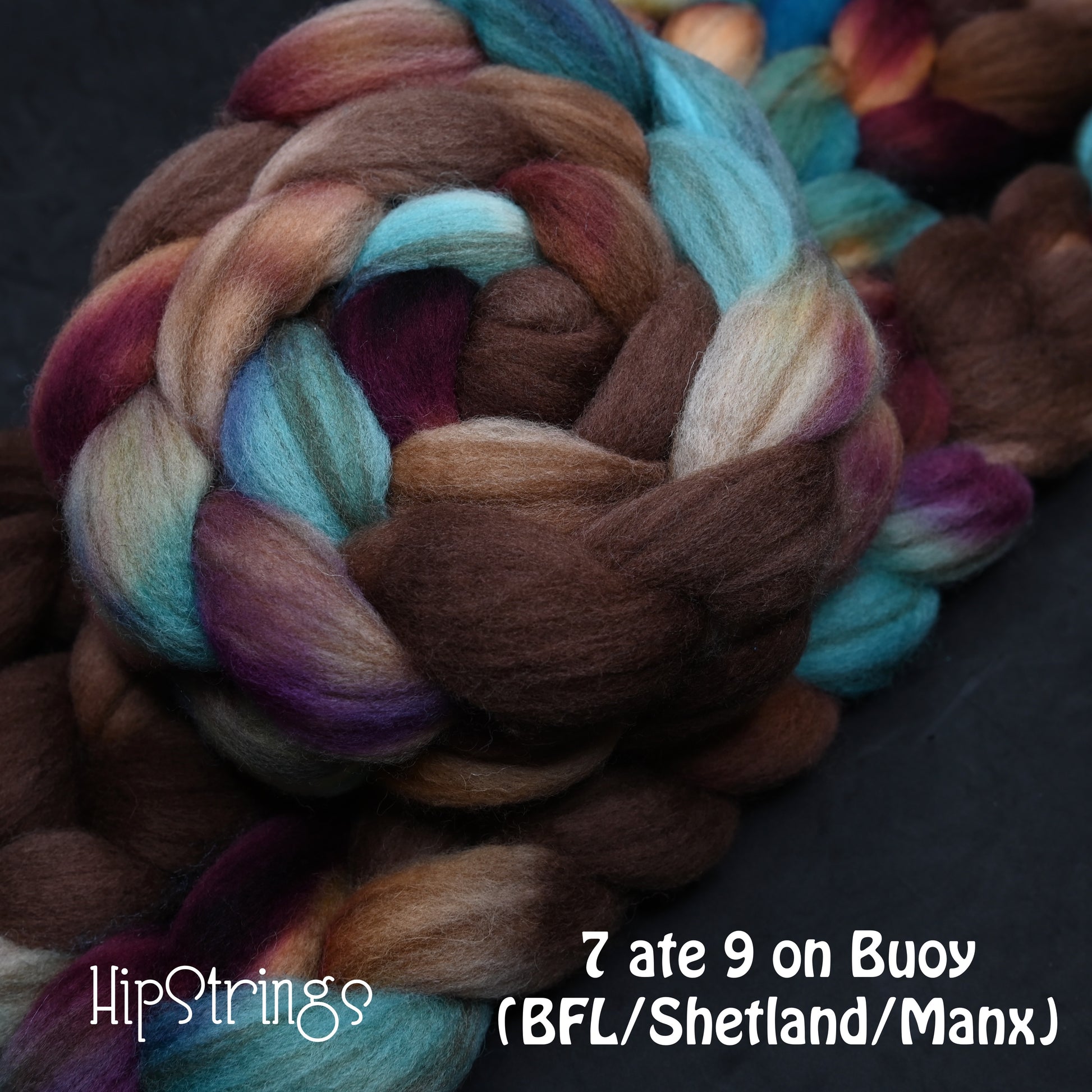 7 ate 9 on Hand Dyed Buoy (BFL/Shetland/Manx Wool) Signature Blend Combed Top - 4 oz