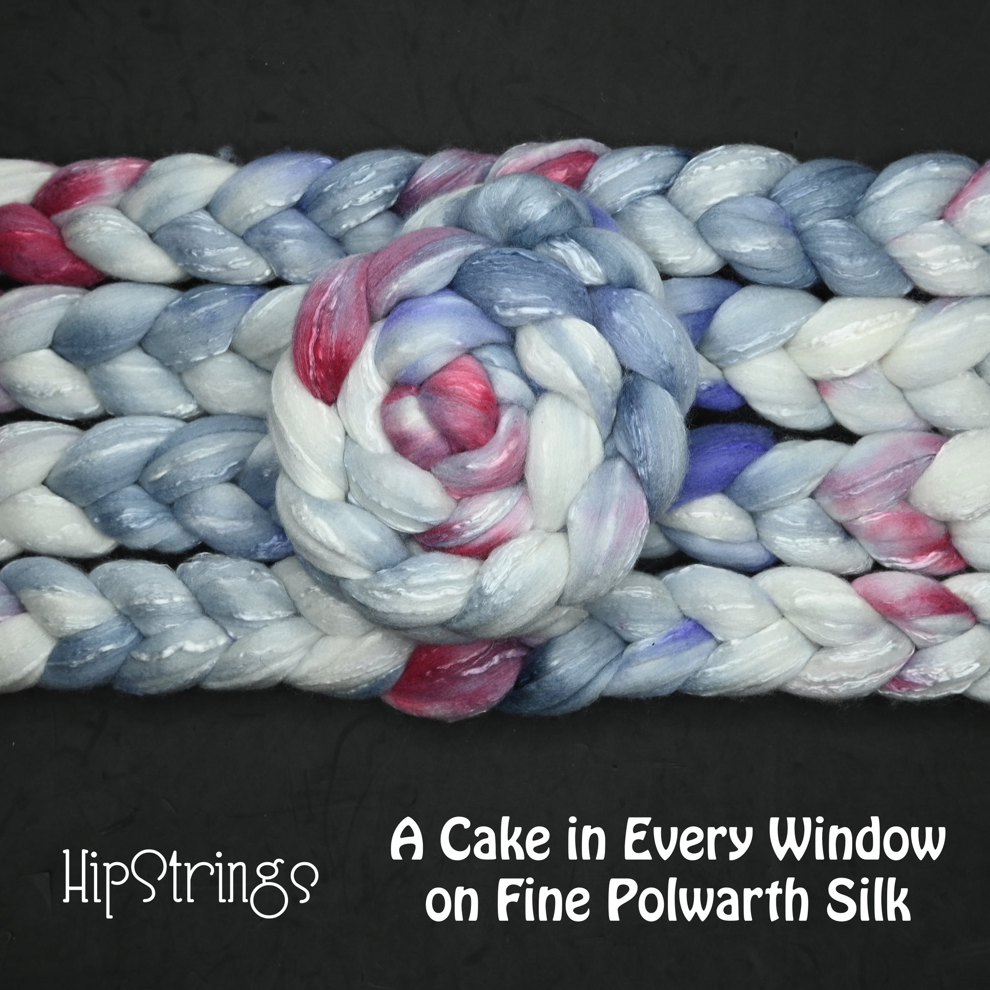 A Cake in Every Window on Hand Dyed Fine Polwarth Silk Combed Top - 4 oz