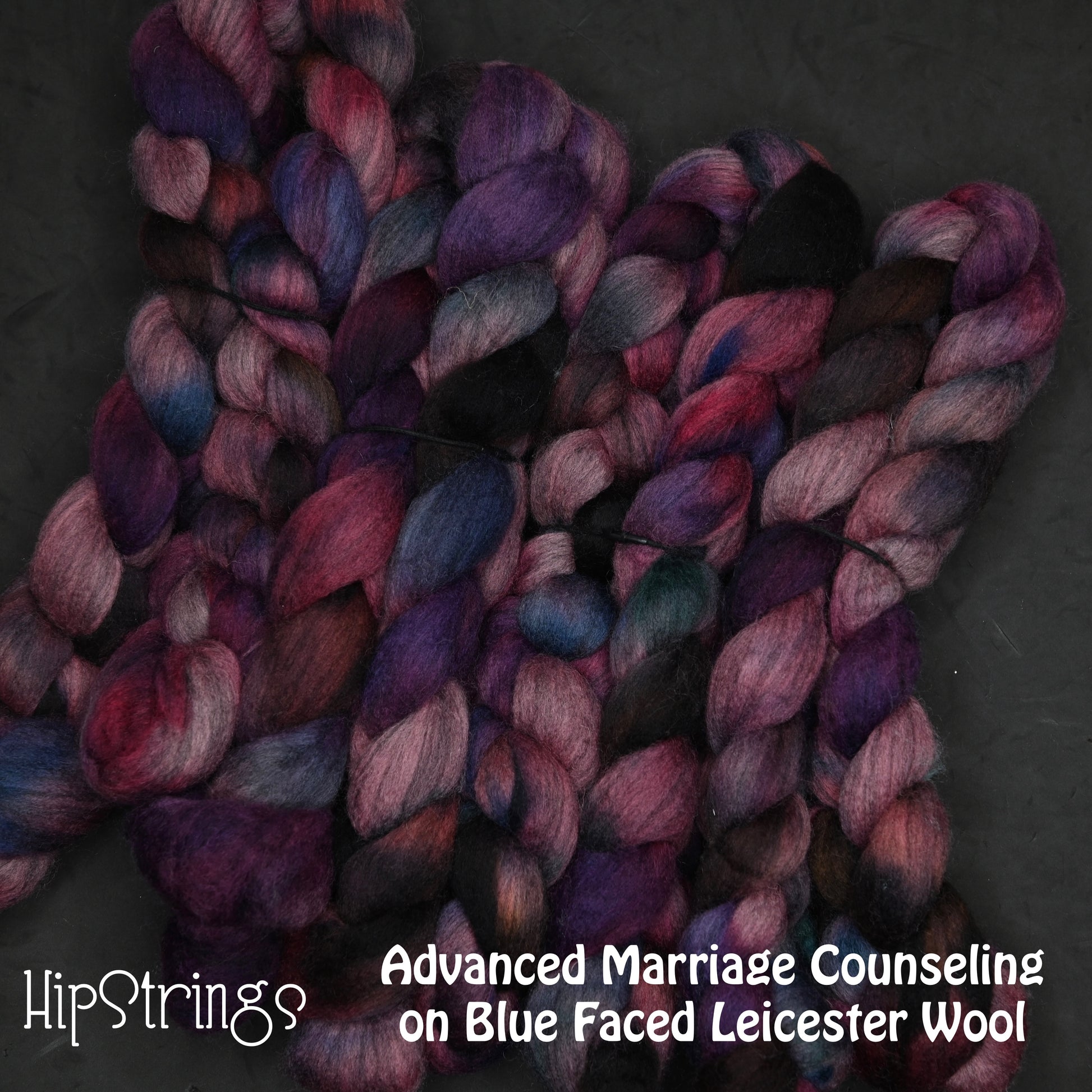 Advanced Marriage Counseling on Hand Dyed Blue Faced Leicester Combed Wool Top 4 oz