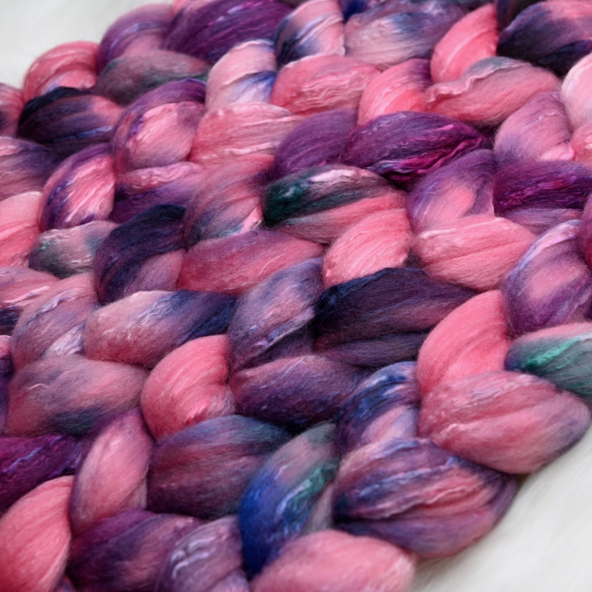 This decadent blend of 80% Fine Polwarth wool and 20% Mulberry Silk is a favorite of handspinners. Sold in 4 ounce quantities and hand dyed in small batches using hypoallergenic dyes.