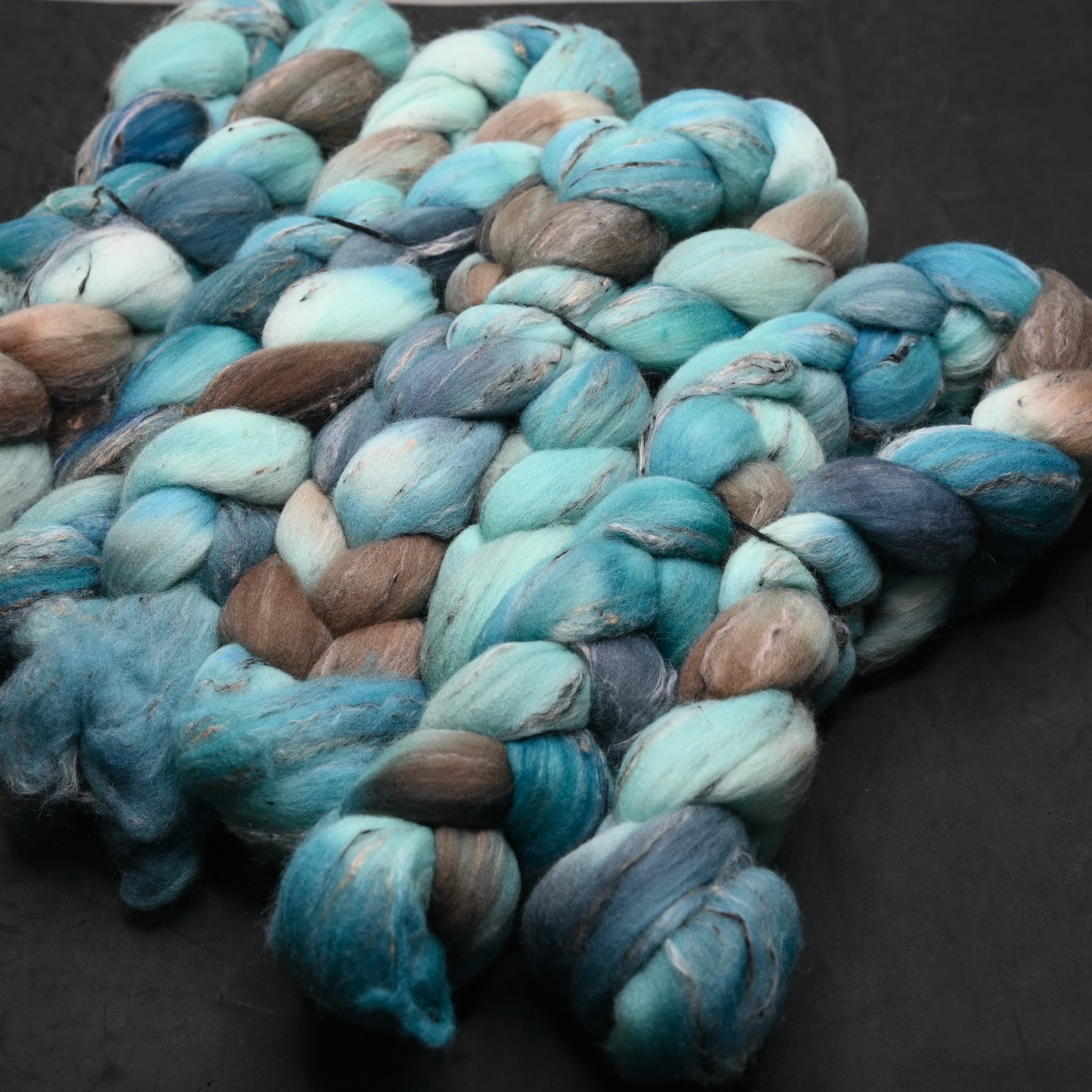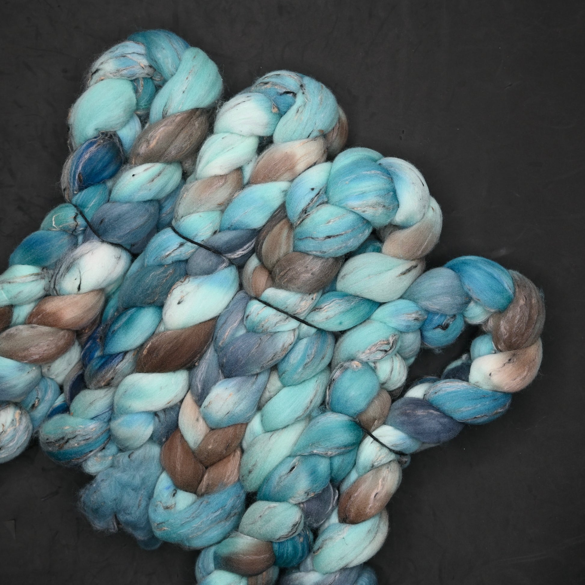 A blend of 89% Shaniko Wool, 6% Acrylic, and 5% Rayon Combed Top sold in 4 ounce quantities and hand dyed using professional acid dyes.