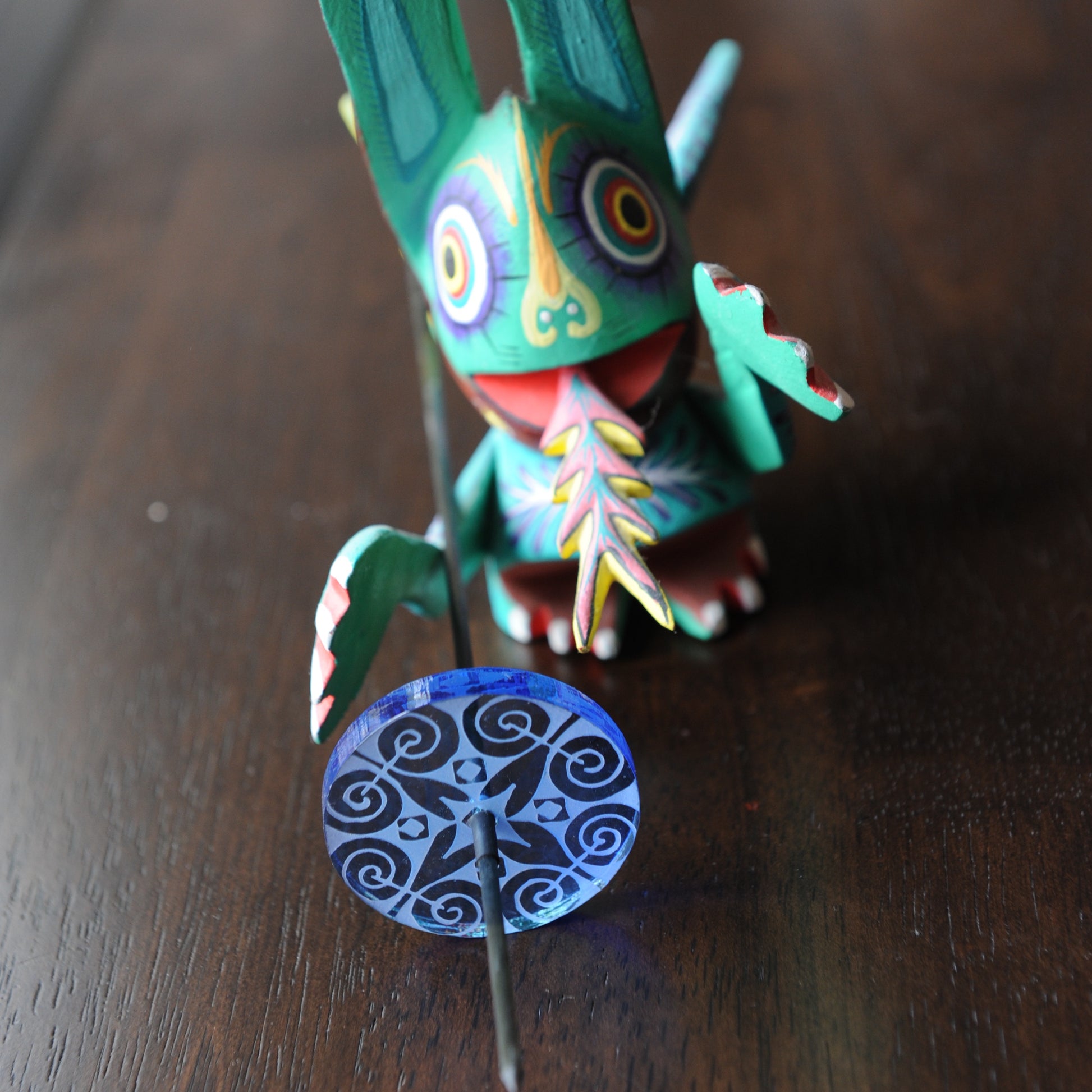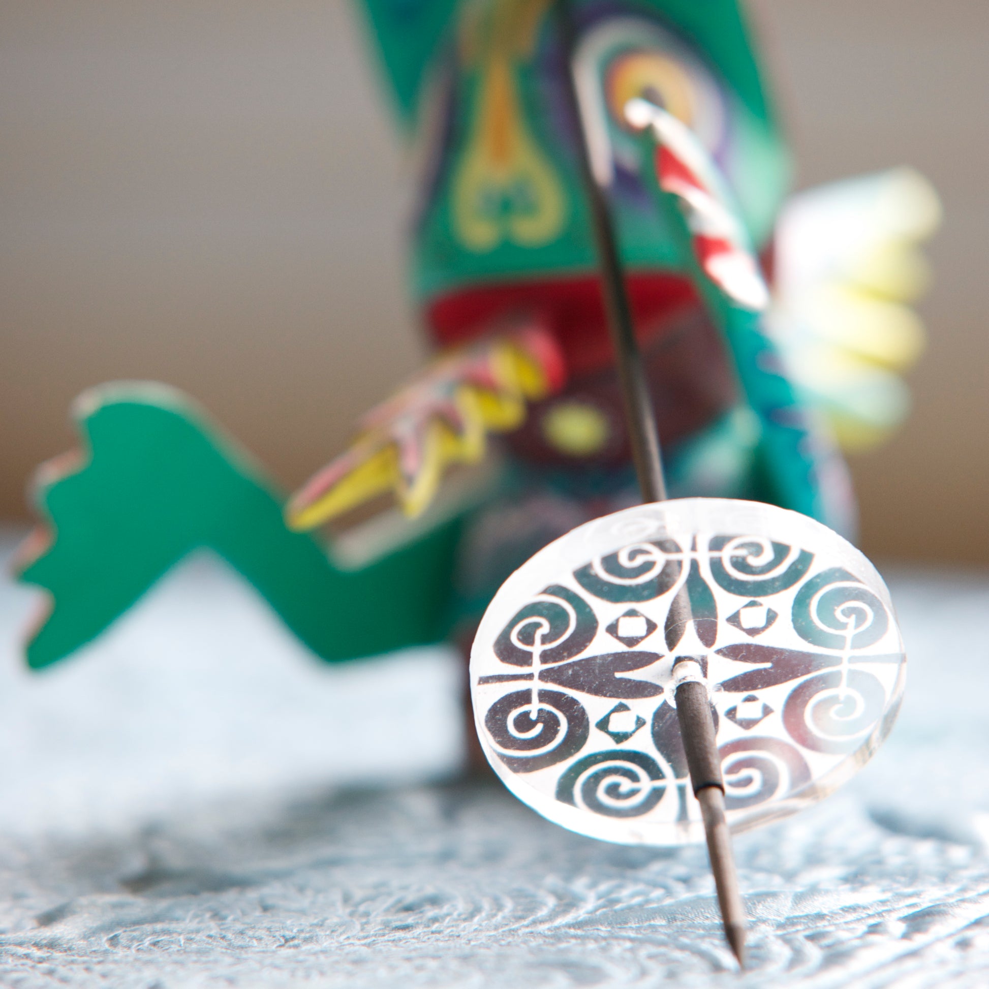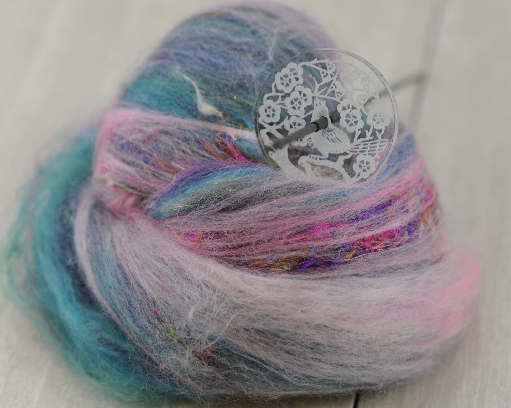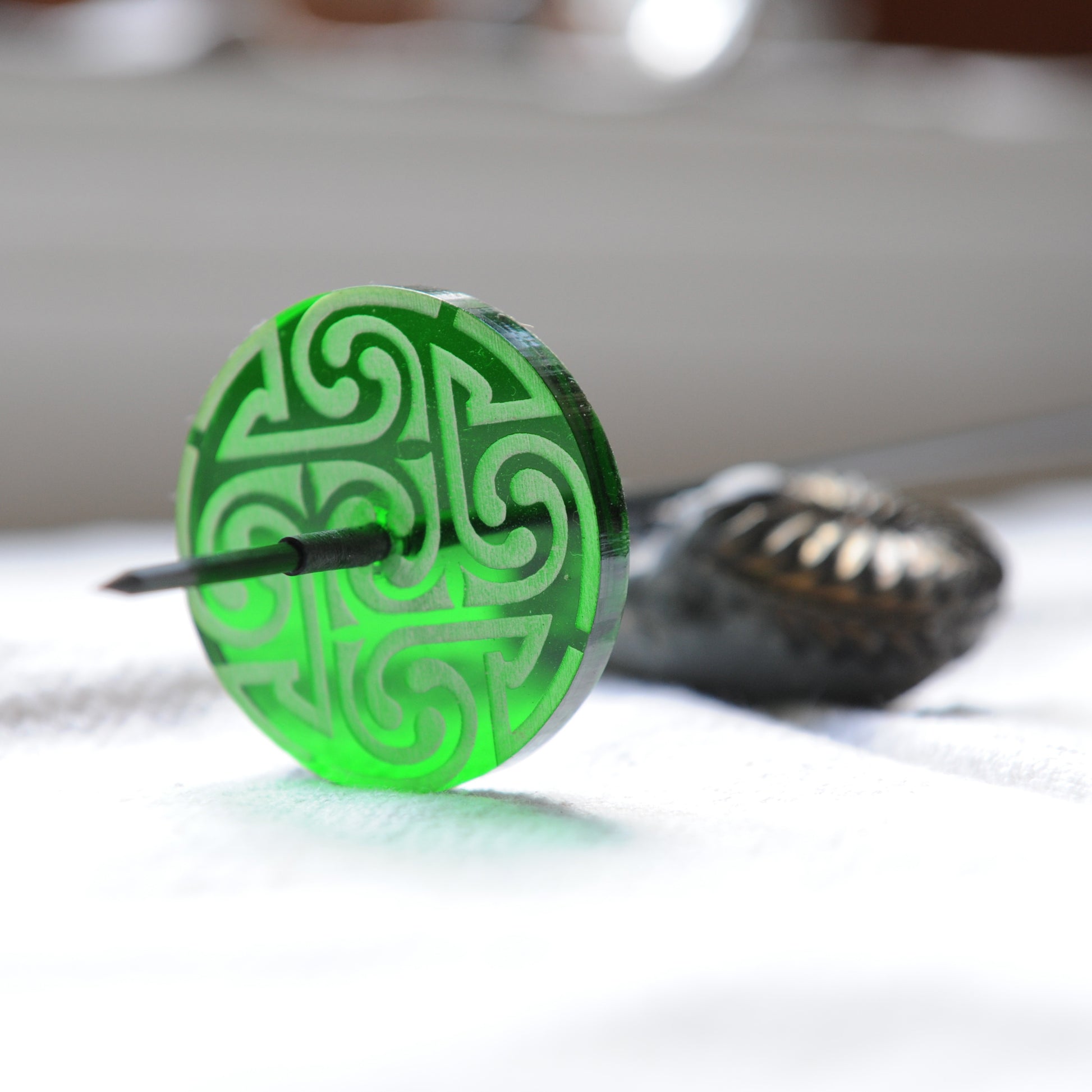 Our Chinook Supported Spindle is most similar in spin and size to a Baby Pu Yok style of spindle. The whorl is 1.75 inches in diameter and is approximately a quarter inch thick.