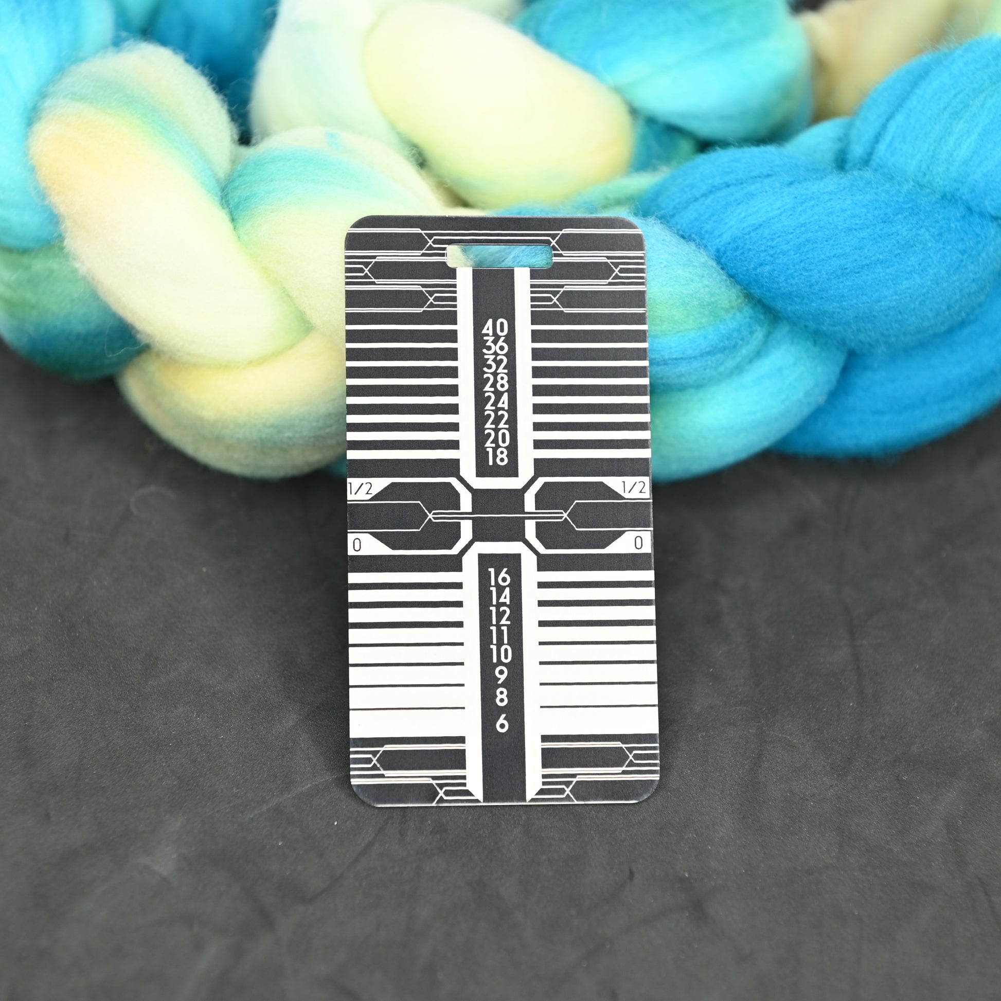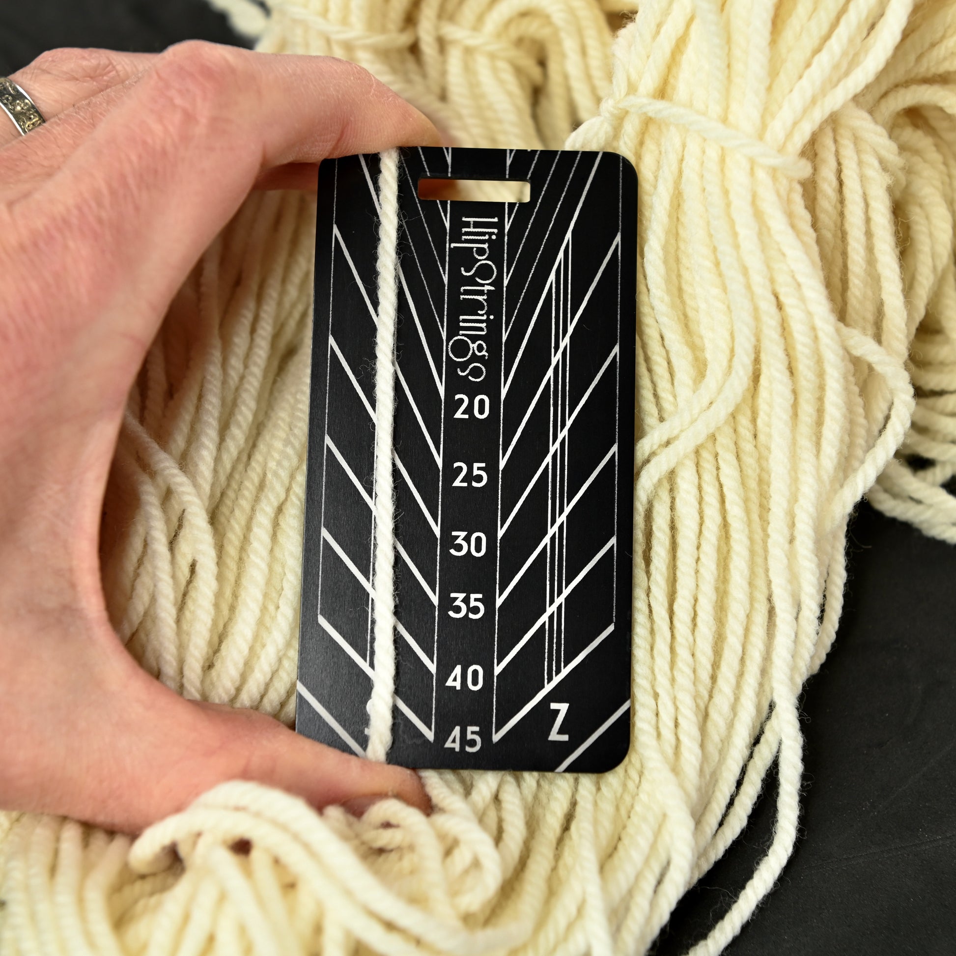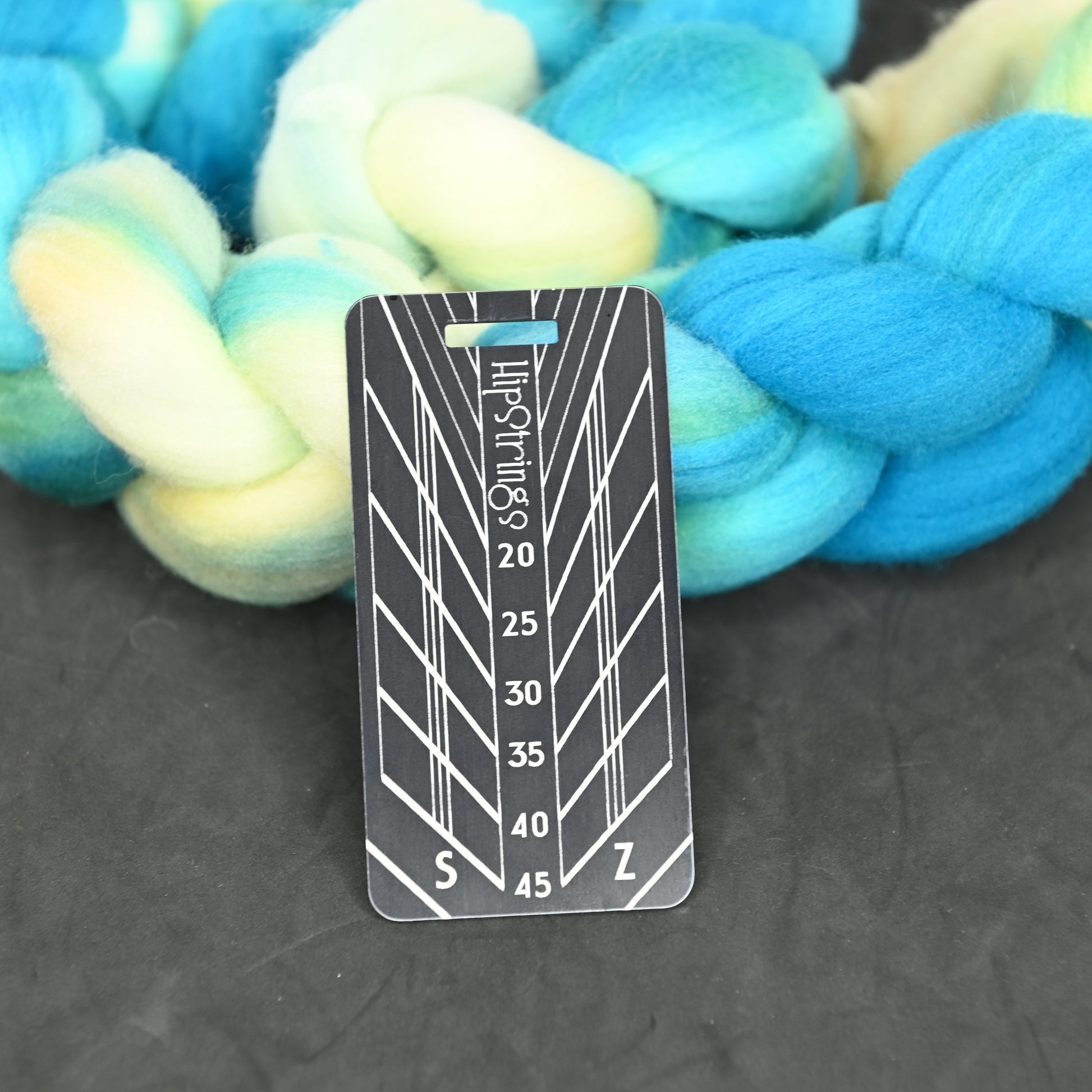 We've combined two of our most popular tool into a single, double sided, durable anodized aluminum tag. Our Consistency Card has our popular precise control card on one size, allowing for easy determination of wraps per inch (WPI) in a range from 6 to 40. On the other side, our angle of twist tool provides an easy way to determine the angle of twist from 20-45 degrees in 5 degree increments for both S and Z twist.