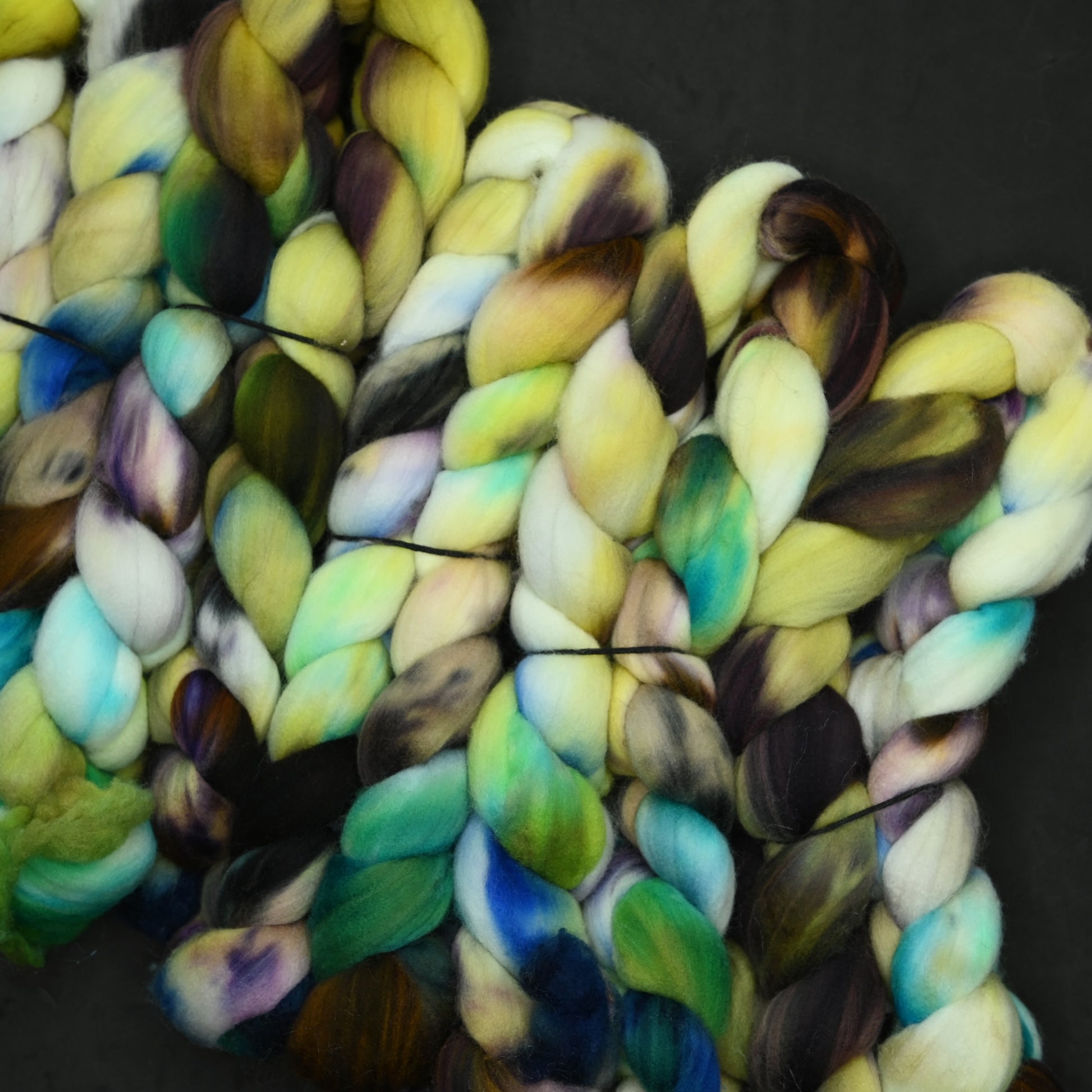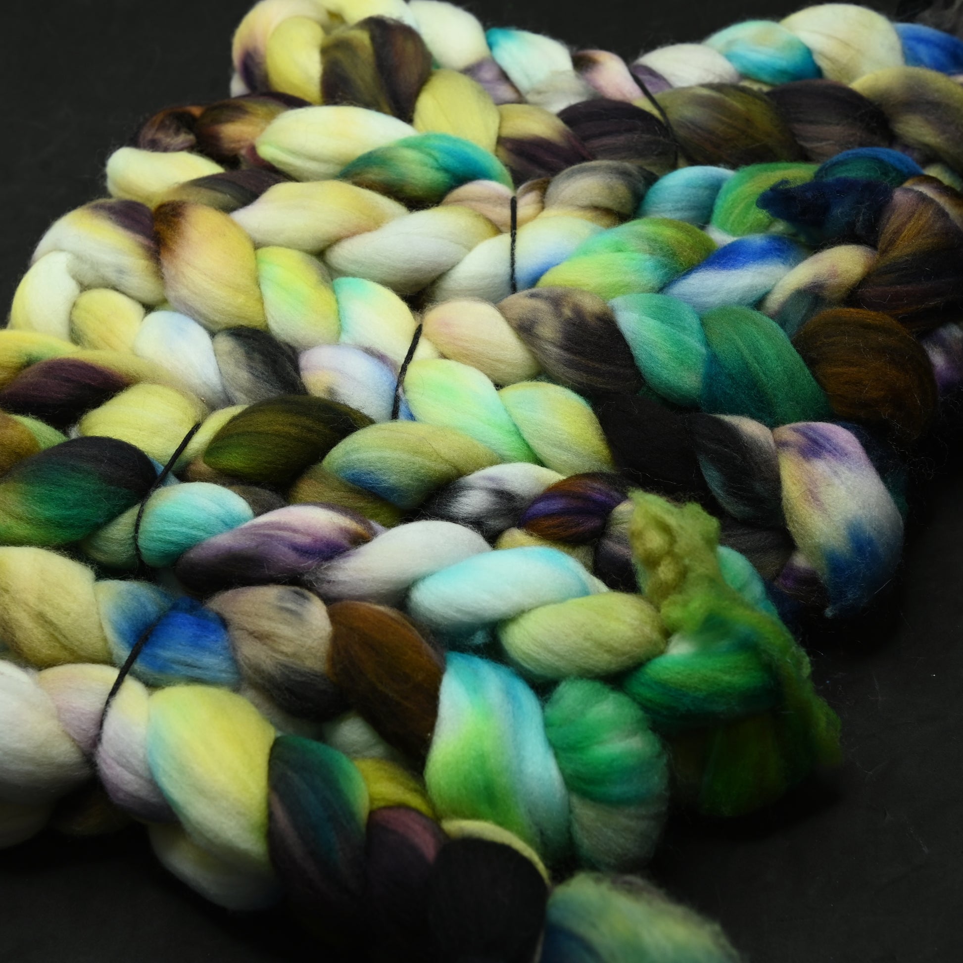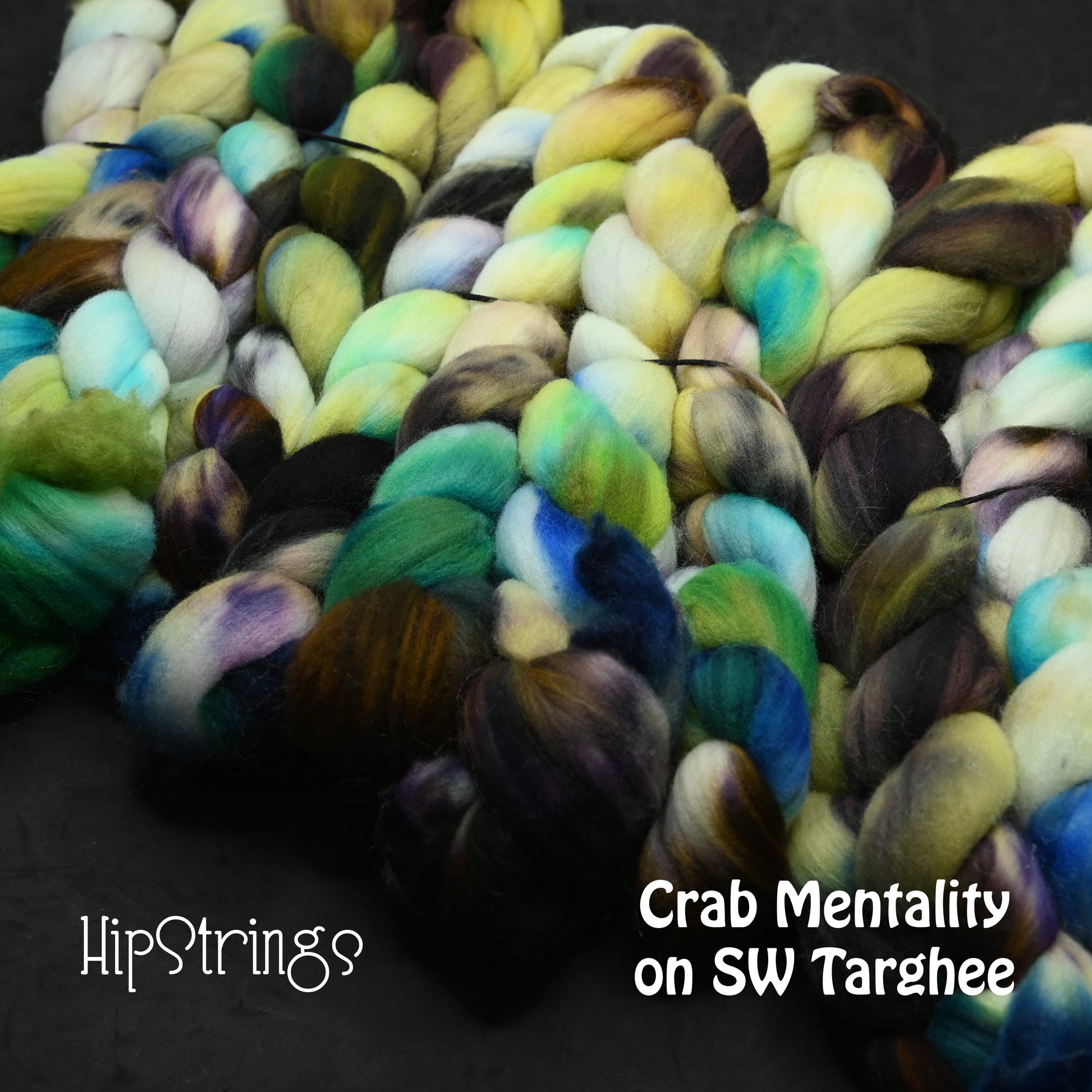 Crab Mentality on Hand Dyed Superwash Targhee Wool Combed Top- 4 oz