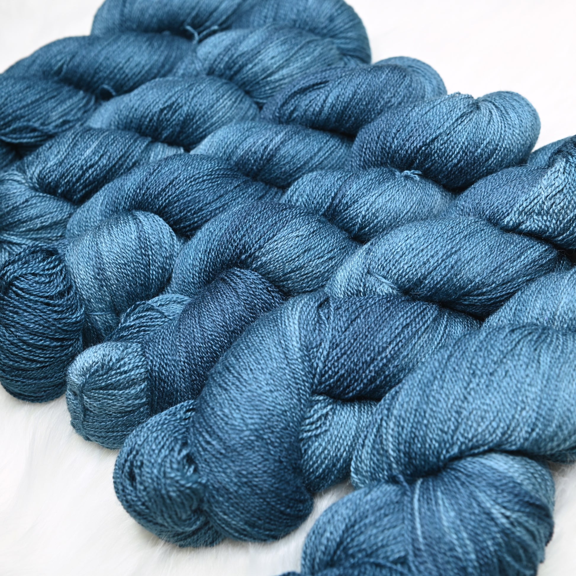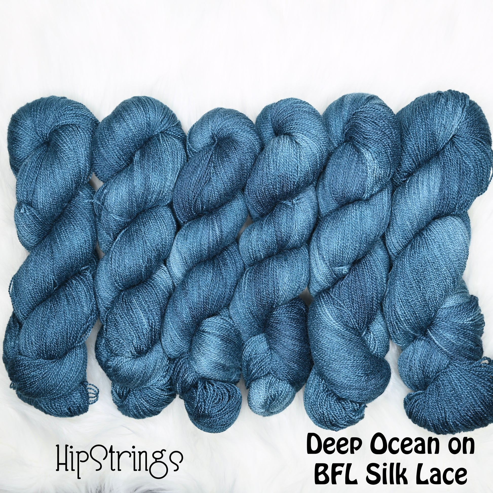 Deep Ocean on Hand Dyed SW BFL Wool Silk Lace Yarn - 100g