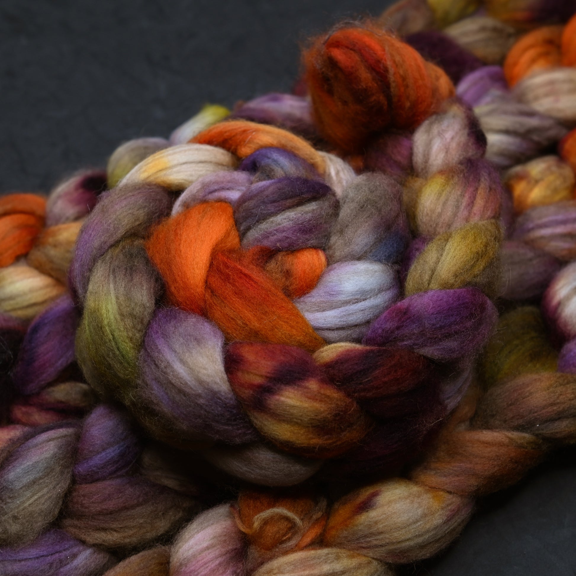 Dyed on four ounces of 50/50 blend of Superfine Merino wool and Baby Camel combed top. Soft and luxurious. Similar in softness to a cashmere merino blend.