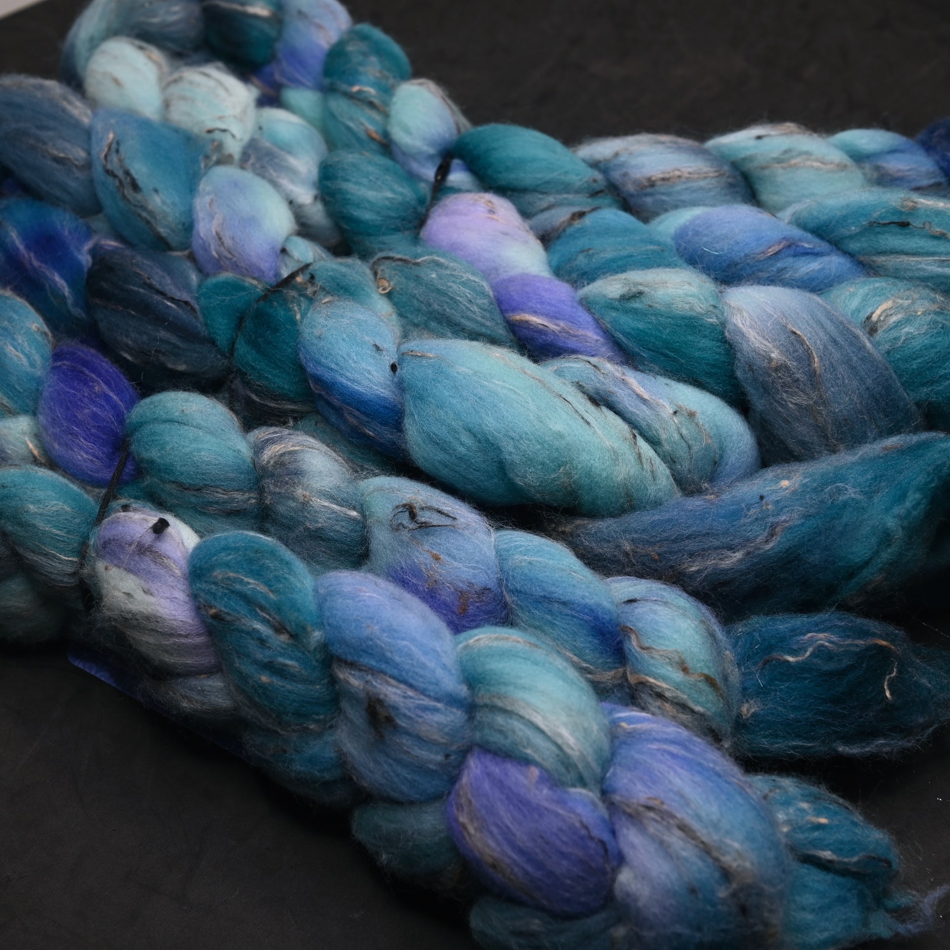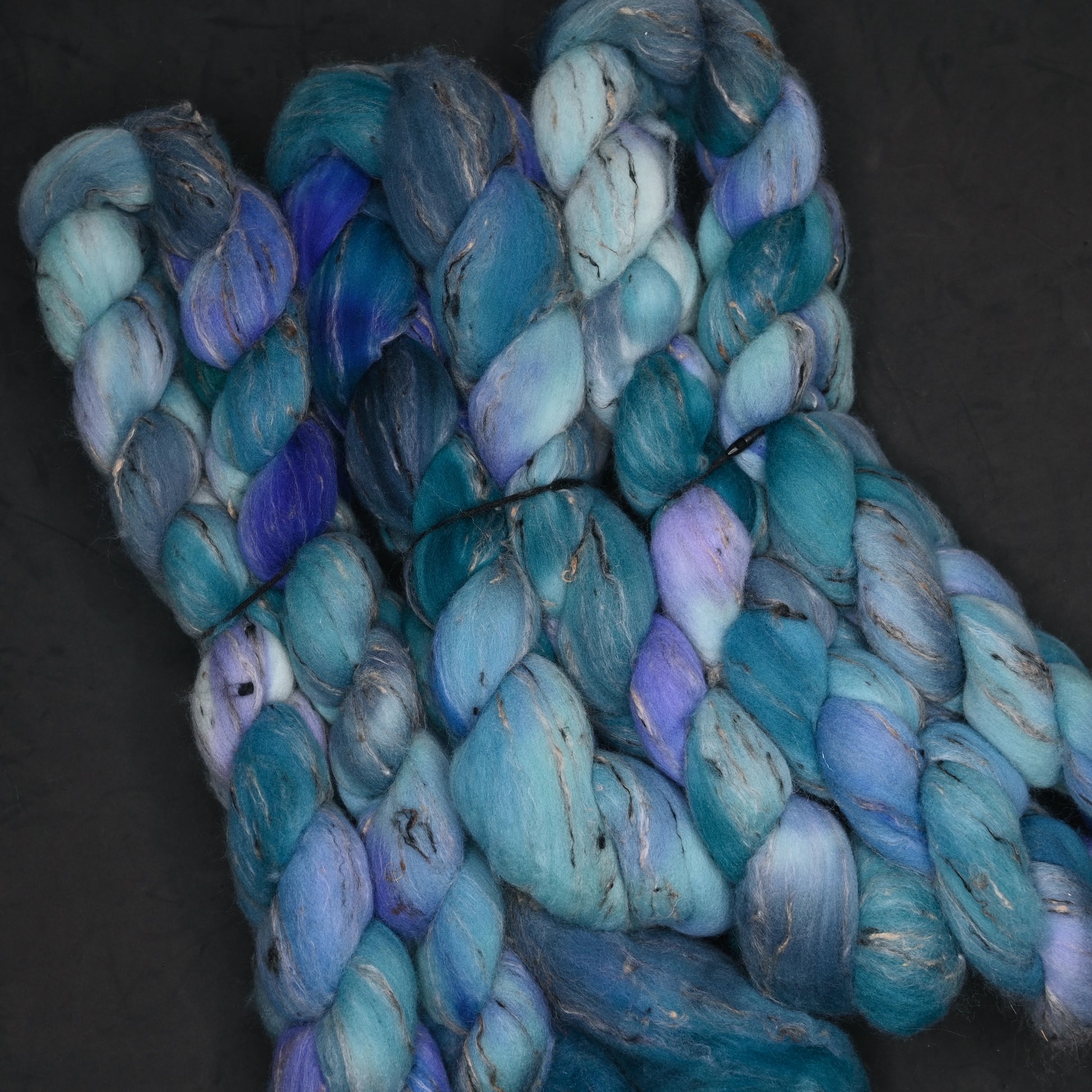 A blend of 89% Shaniko Wool, 6% Acrylic, and 5% Rayon Combed Top sold in 4 ounce quantities and hand dyed using professional acid dyes.