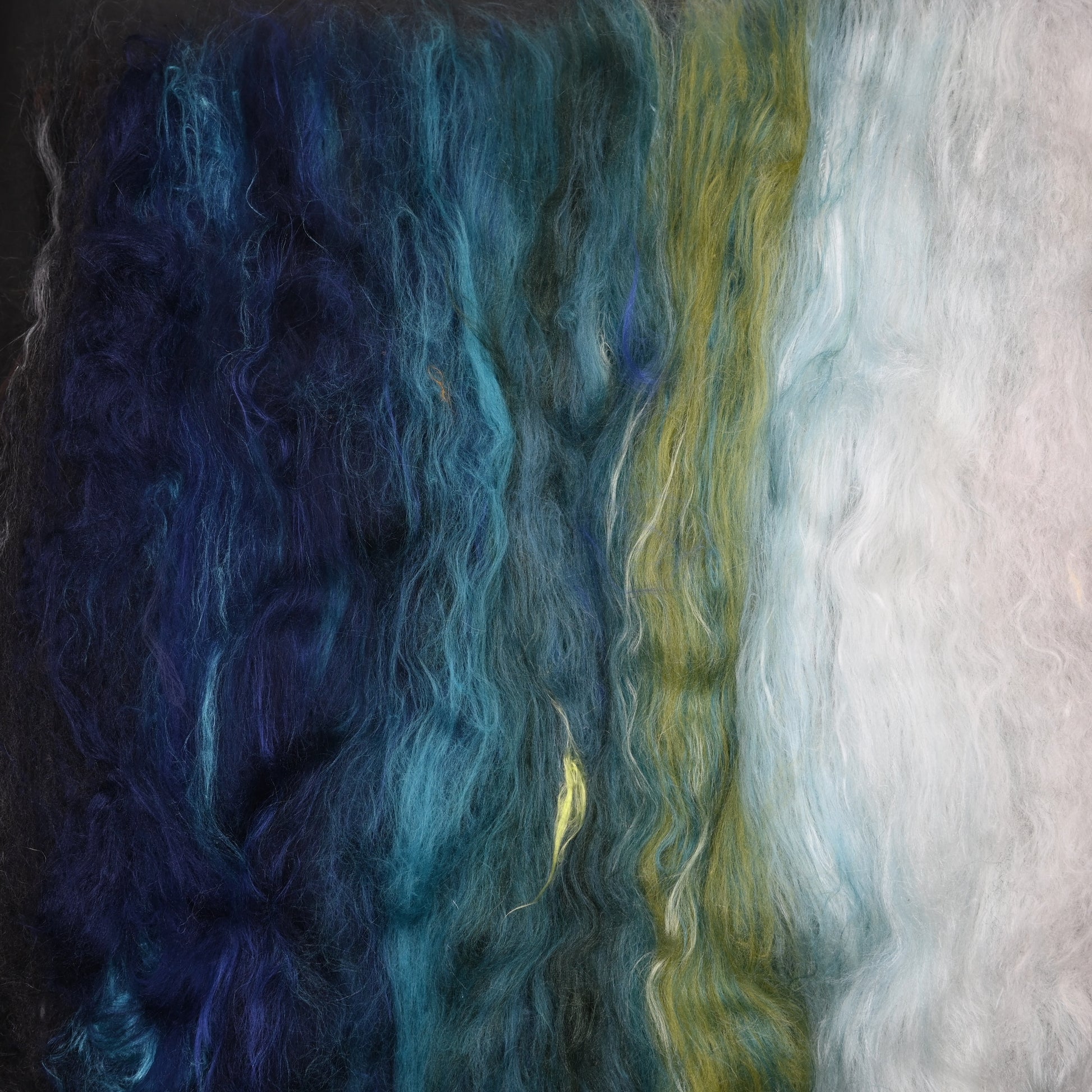 Undercurrent was a Merino Flax Silk Signature Blend based on a feeling - that deep undercurrent in your life that seems impossible to shift - that was one of my favorite colors for its complexity while still being a neutral. That complex neutrality is now deconstructed into a beautiful gradient that shows that even things that seem neutral are full of shadows and highlights. Undercurrent features Merino and Corriedale with an array of Tussah Silks, viscose from Bamboo and Ramie. Each four ounce hand carded batt features 60% Merino wool, 10% Fine Corriedale fleece, 15% Tussah Silk, 10% Viscose from Bamboo and 5% Ramie.