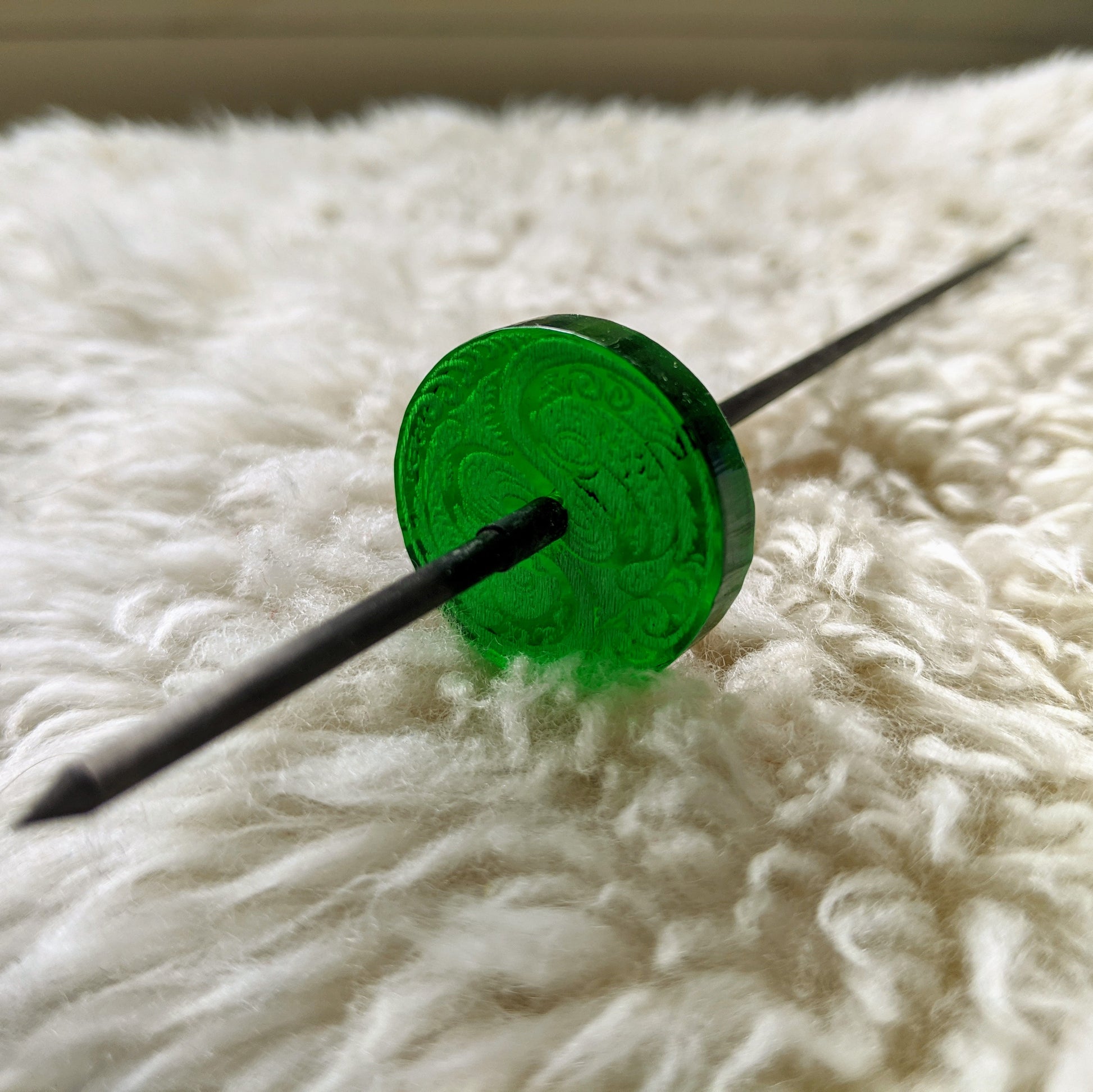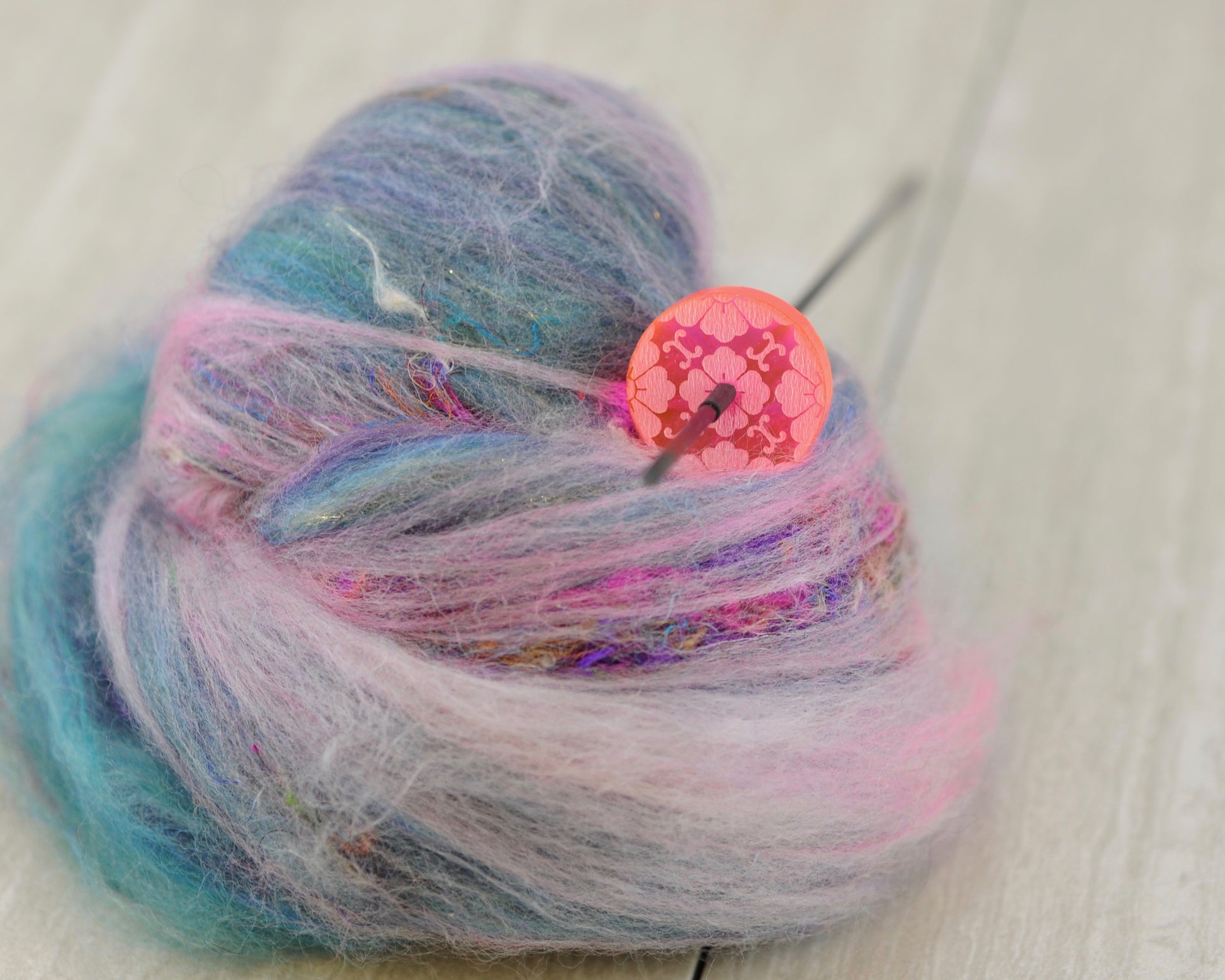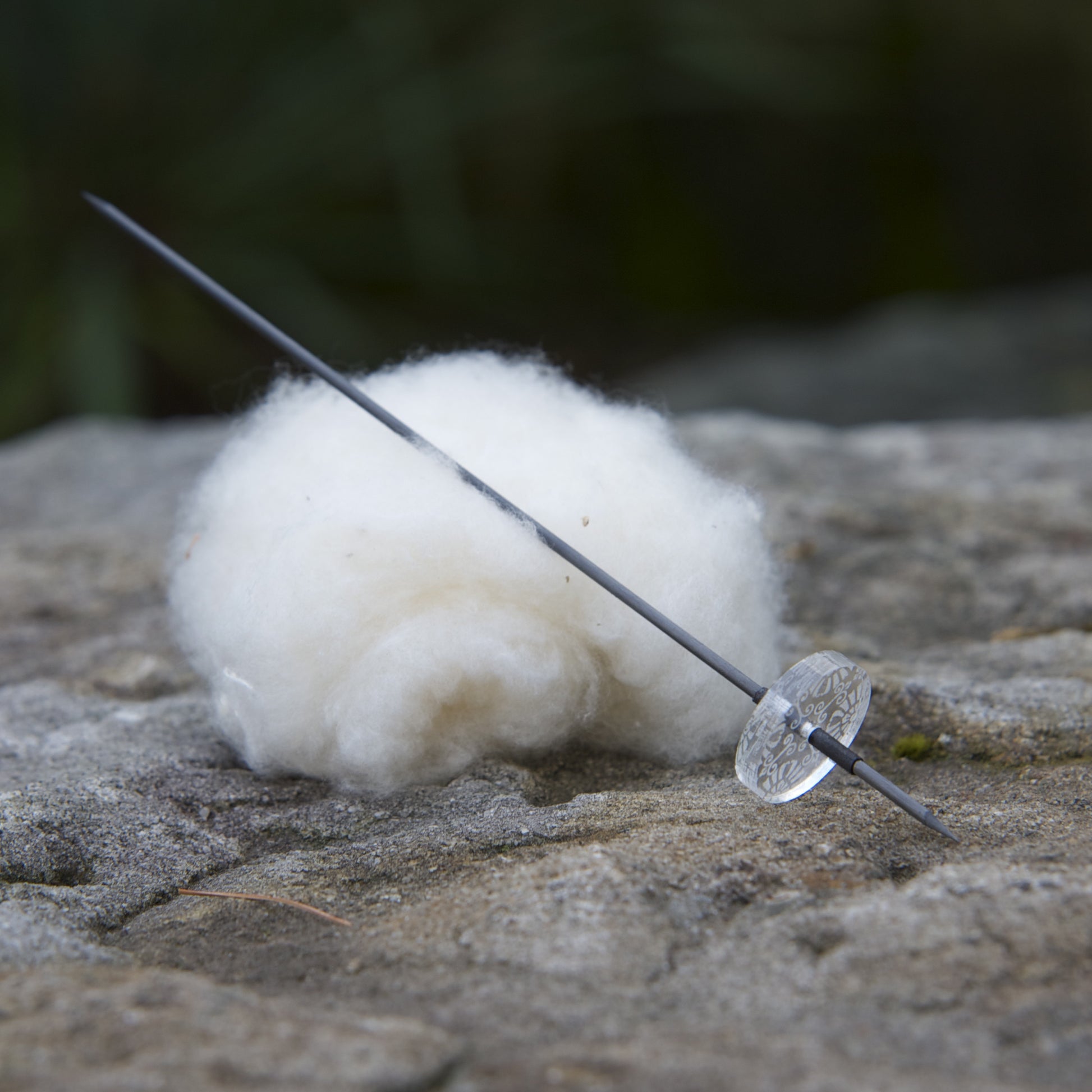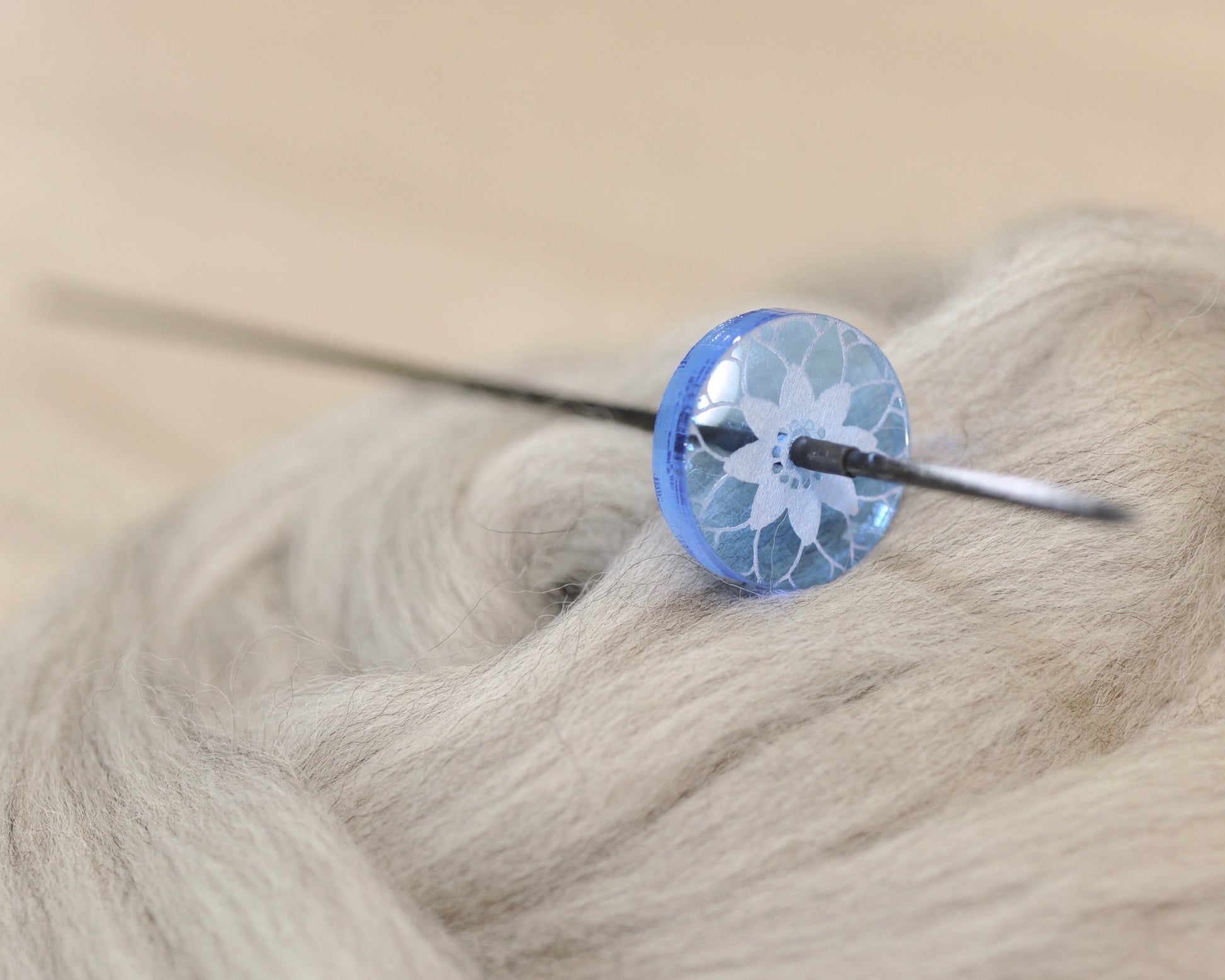 Our Sirocco Supported Spindle is a lightweight version of a traditional Indian Coin Tahkli and is suitable for superfine singles of short stapled fibers, including cashmere, yak, camel, cotton and high twist fibers such as silk. Whorl diameter is 1.125 inches. Because of the small whorl, this is a super fast spindle.