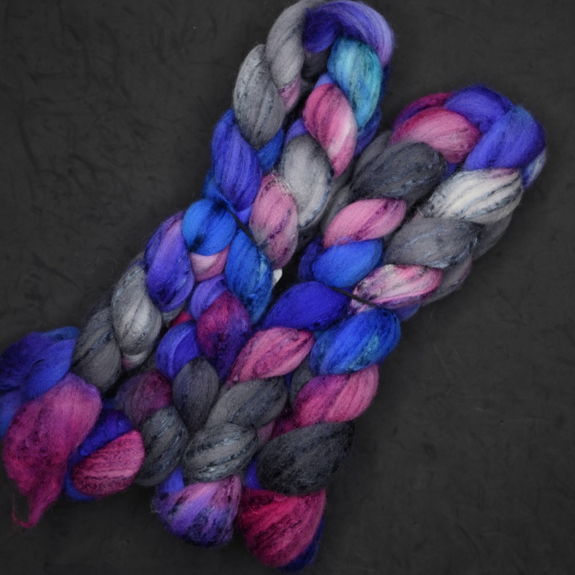 Why can't you trust atoms? Because they make up everything. They Make Up Everything is a variegated colorway featuring vibrant violet, rich royal blue edged with cyan, tanzanite, magenta and deep charcoal.