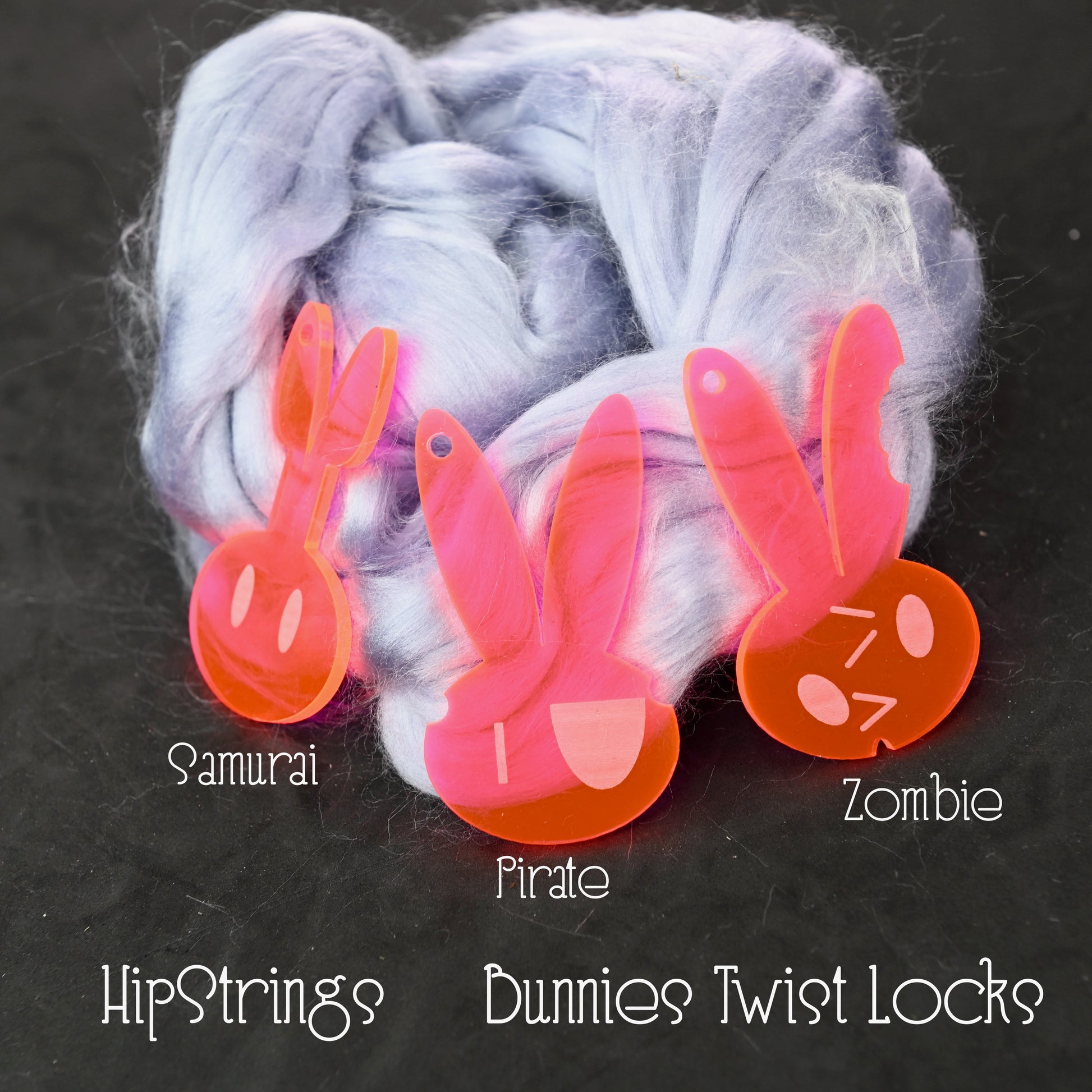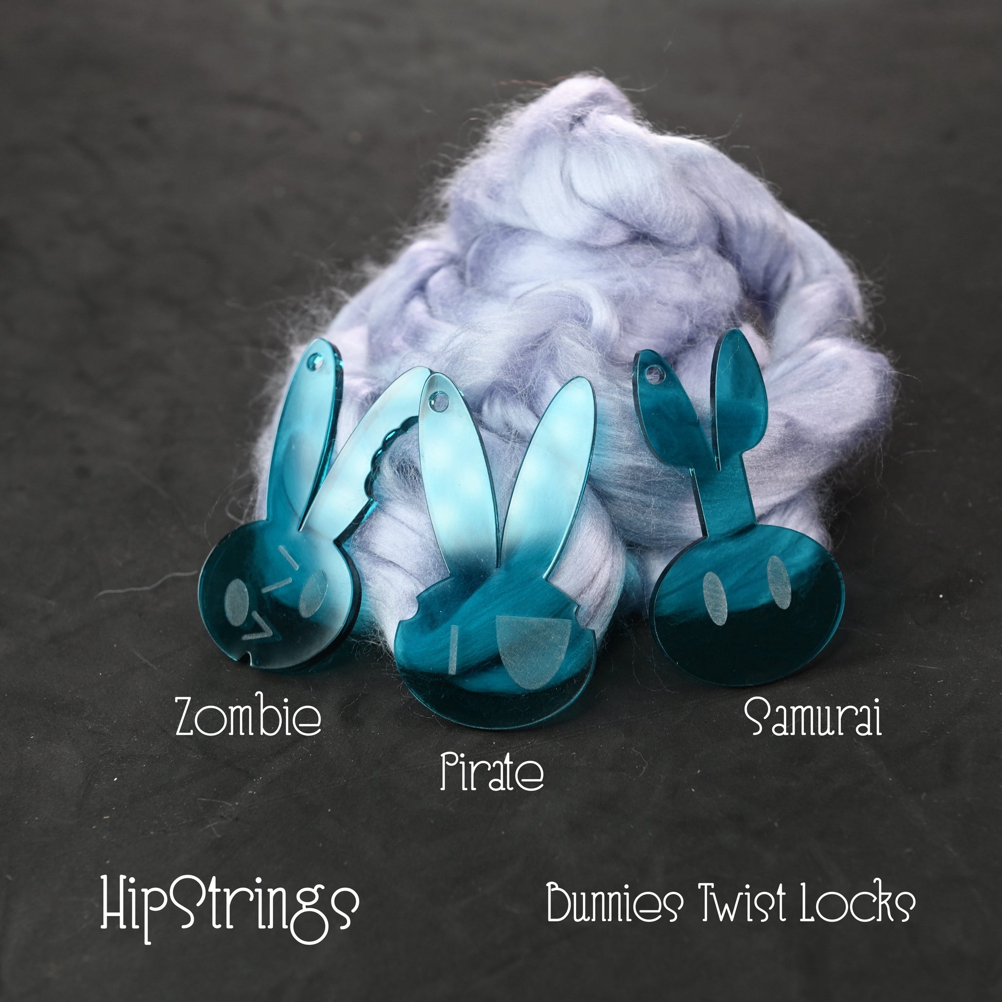 Sometimes you need a little help making sure your yarn doesn't run off and create a mess, or to keep a single from losing twist during spinning. These little bunnies will help you out - securing your yarn or single ends and bringing them under control.